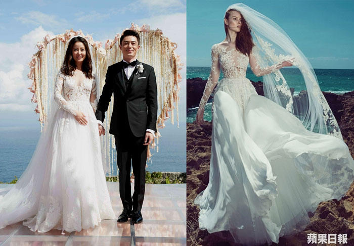 Kết hôn ở tuổi 40, Lâm Tâm Như chọn chiếc váy trong lễ thành hôn của thương hiệu Zuhair Murad. Nổi tiếng tạo ra các tác phẩm váy đầm tráng lệ, Zuhair Murad trong hình ảnh Lâm Tâm Như vừa gợi cảm vừa kiều diễm. Thân trên và tay váy được làm xuyên thấu với những chi tiết thêu đính lấp lánh dưới nắng gió đảo Bali. Thiết kế quyến rũ có giá khoảng 400 triệu đồng.