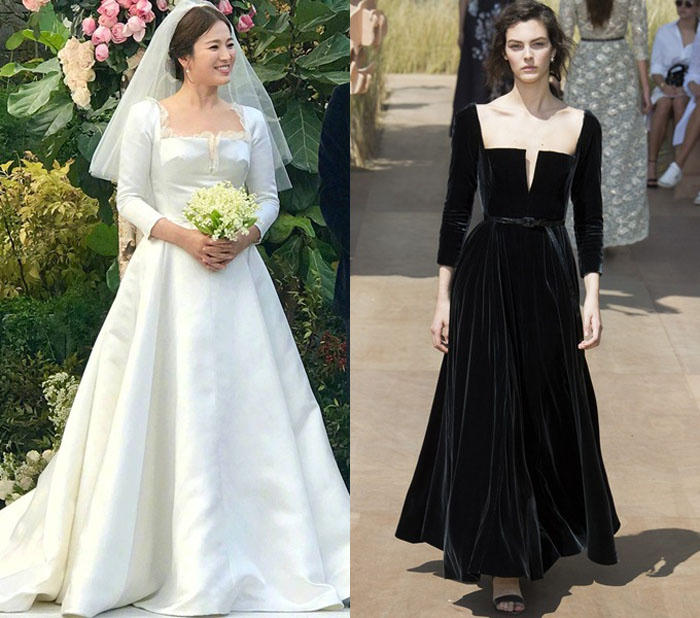 Váy trắng làm từ lụa của Dior mà Song Hye Kyo mặc trong ngày thành hôn được lấy cảm hứng từ một thiết kế couture mùa thu 2017.