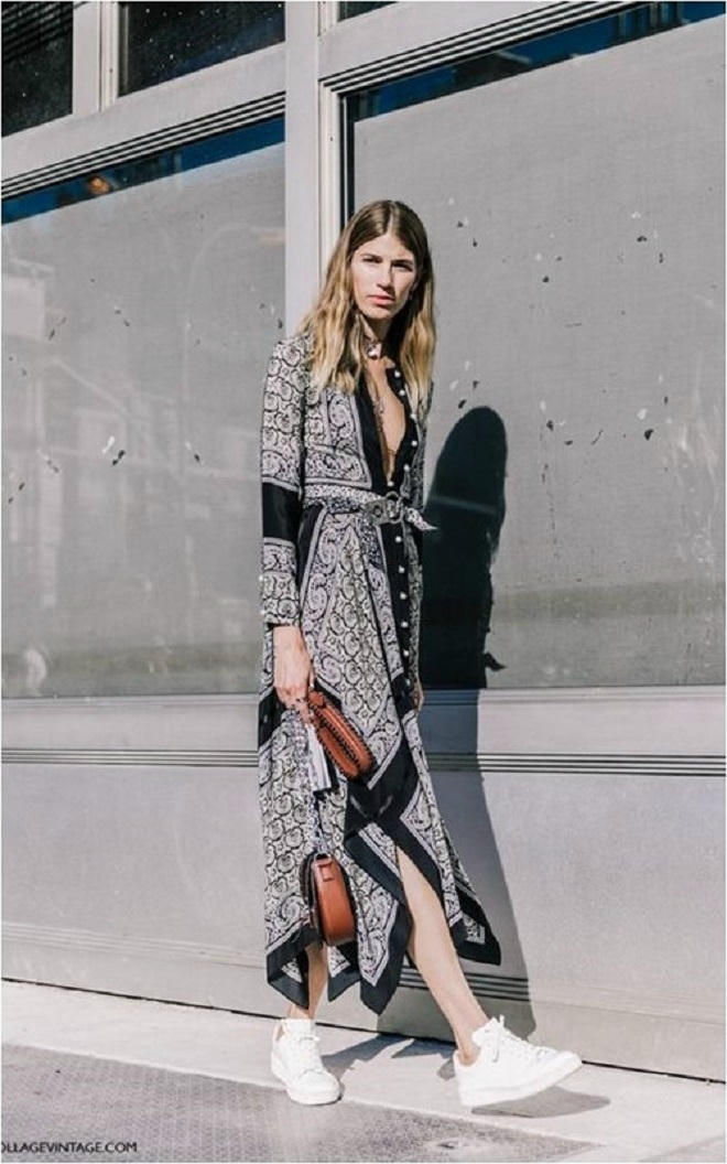Váy dài và sneaker - 'công thức' phối đồ hot nhất mùa hè 2018
