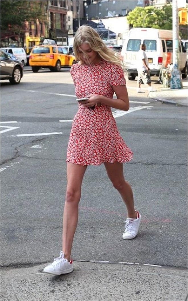 Nếu bạn không quá cao có thể chọn những chiếc váy ngắn trên gối để tôn lên vóc dáng và đôi sneaker trắng sẽ giúp bạn trông trẻ trung, năng động hơn hẳn.