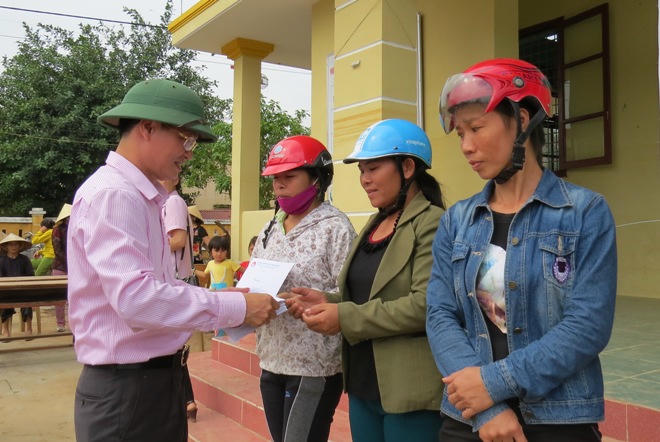 Tại vùng rốn lũ Quảng Lộc thuộc thị xã Ba Đồn, Đoàn công tác đã trao tận tay 300 suất quà (500 nghìn đồng/suất) bà con nhân dân ở xã này. Trong đợt mưa lũ kéo dài ngày 14 – 16/10 vừa qua, Quảng Lộc chìm sâu trong cơn lũ dữ, có nơi ngập trên 2m, vượt quá nóc nhà.