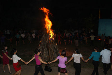 Sau khi trao quà lưu niệm cho cán bộ và nhân dân xã Minh Thanh, đoàn chúng tôi rời khỏi Khu di tích của Bộ Tư pháp. Bước xuống bậc thềm cuối cùng, trời cũng vừa nhá nhem tối. Tiết trời mùa thu miền sơn cước hơi se lạnh, nhưng mọi thứ trở nên ấm áp, sôi động hơn khi âm nhạc vang lên giữa màn đêm. Những tiết mục giao lưu giữa cán bộ tư pháp, nhân dân xã Minh Thanh cùng các nhạc sĩ làm khuấy động cả màn đêm tĩnh mịch. Bà con lối xóm đứng quanh các nghệ sĩ cùng múa hát.