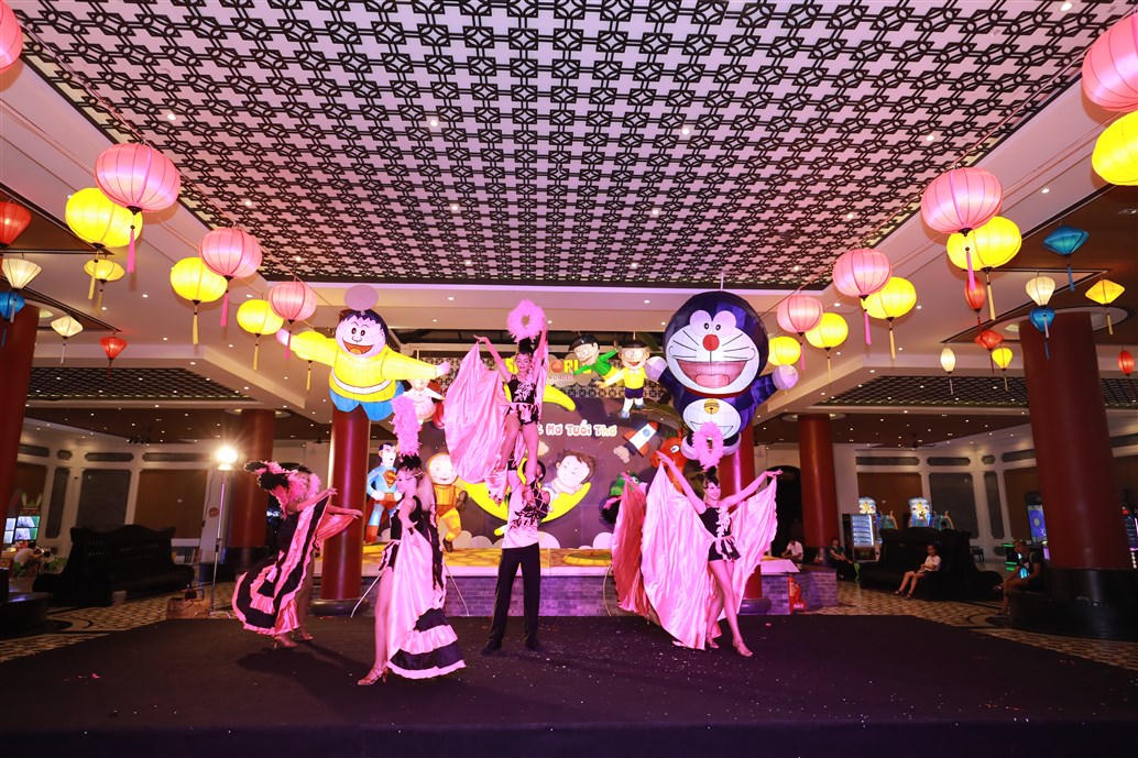 Không chỉ thỏa thích check in đèn lồng lung linh kỳ ảo, du khách còn có những khoảnh khắc bất ngờ, cuốn hút với sự xuất hiện của hai nghệ sĩ hài Tự Long và Xuân Bắc ngay trong đêm khai mạc. Những màn đối thoại dí dỏm, hài hước của Xuân Bắc và Tự Long khiến khán giả phấn khích, tiếng vỗ tay reo hò không ngớt.