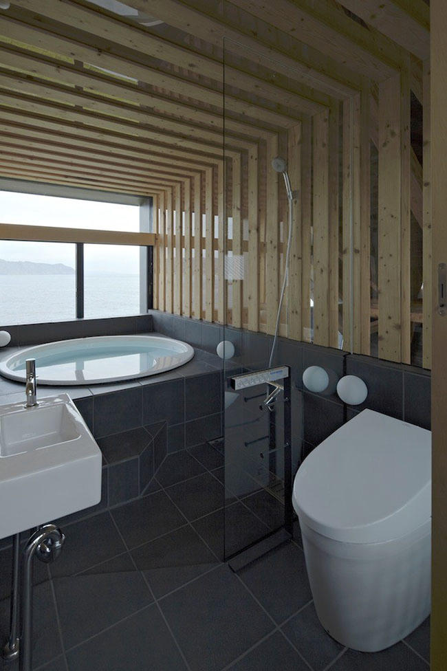 Căn biệt thự độc đáo này nằm gần bờ biển êm ả và tĩnh lặng của vịnh Tokyo.