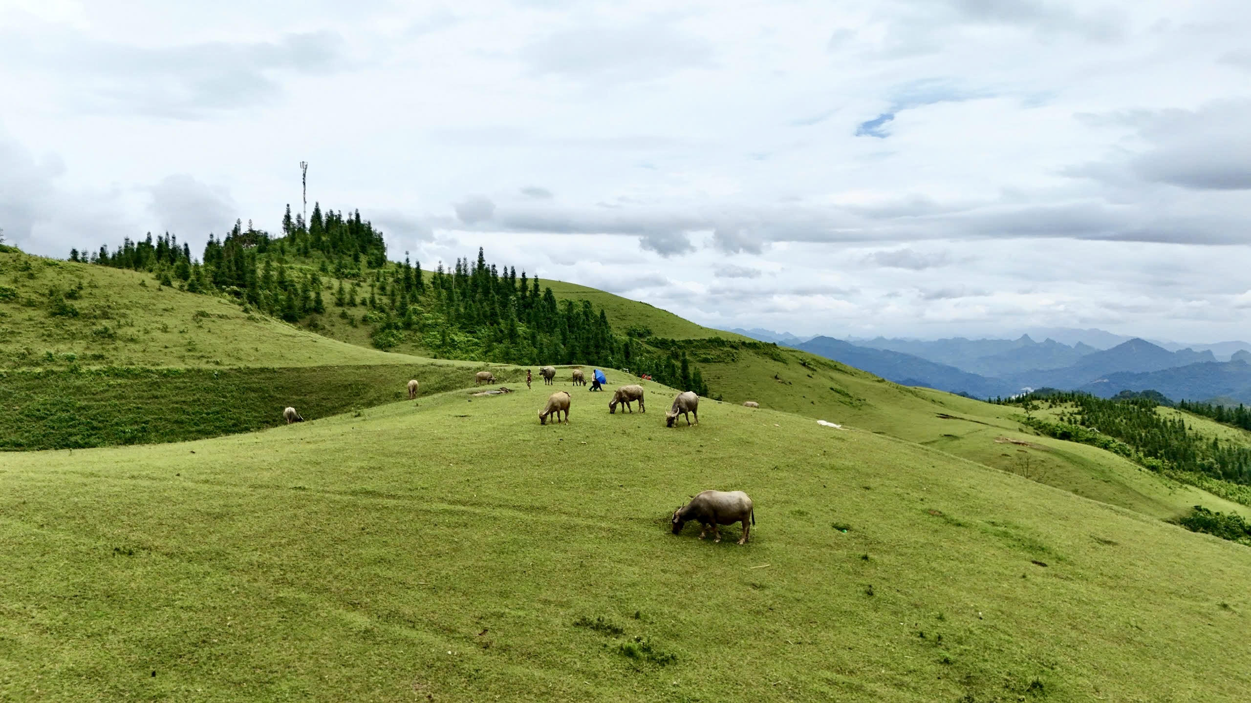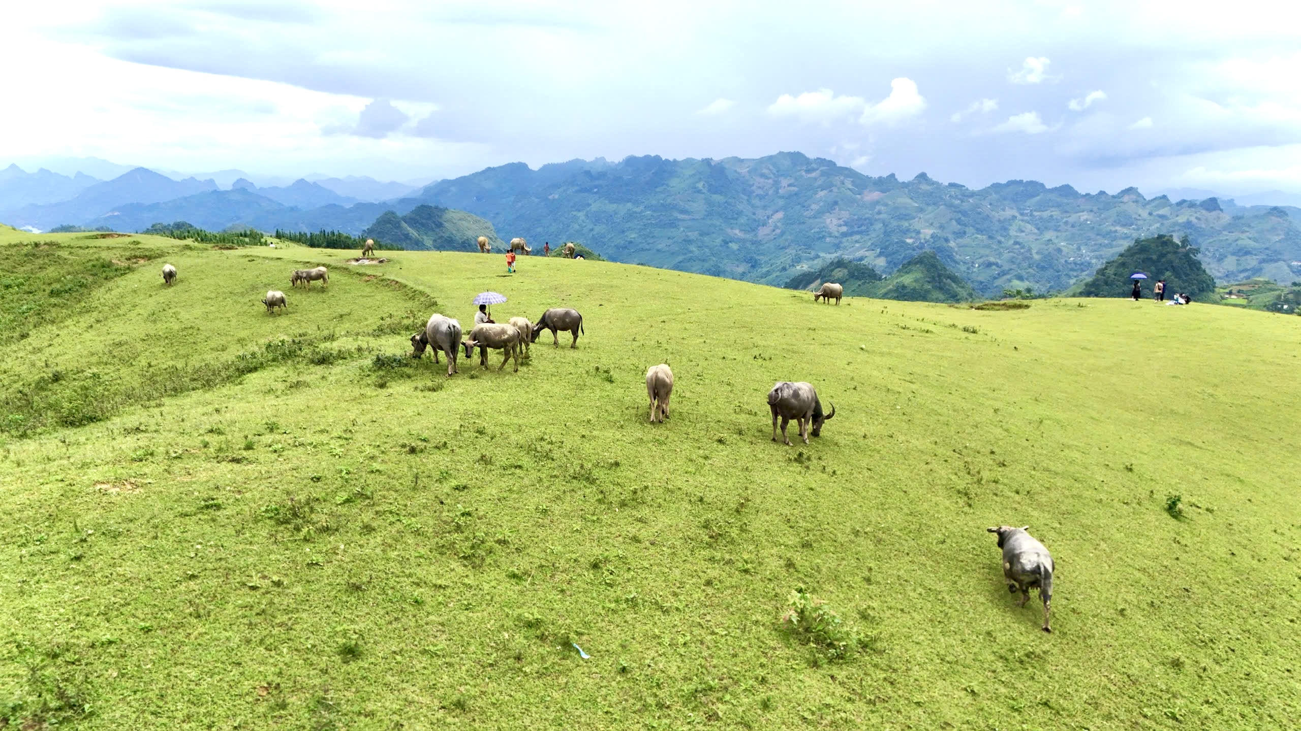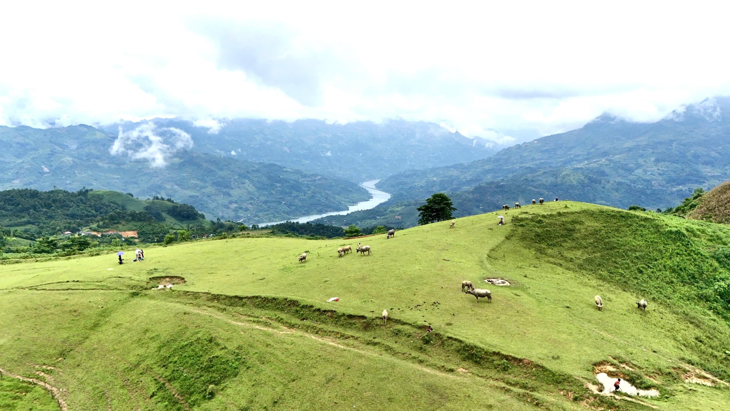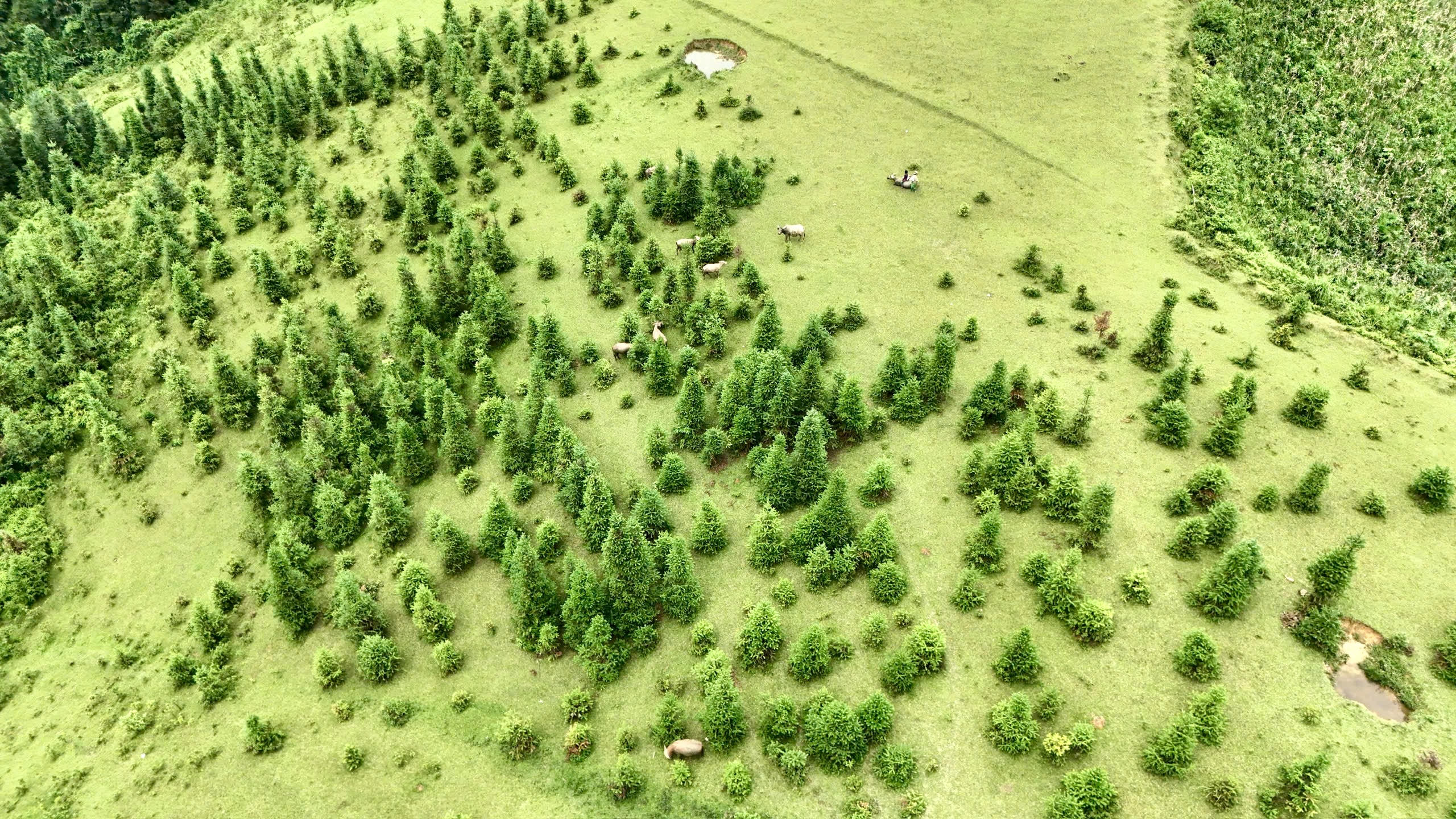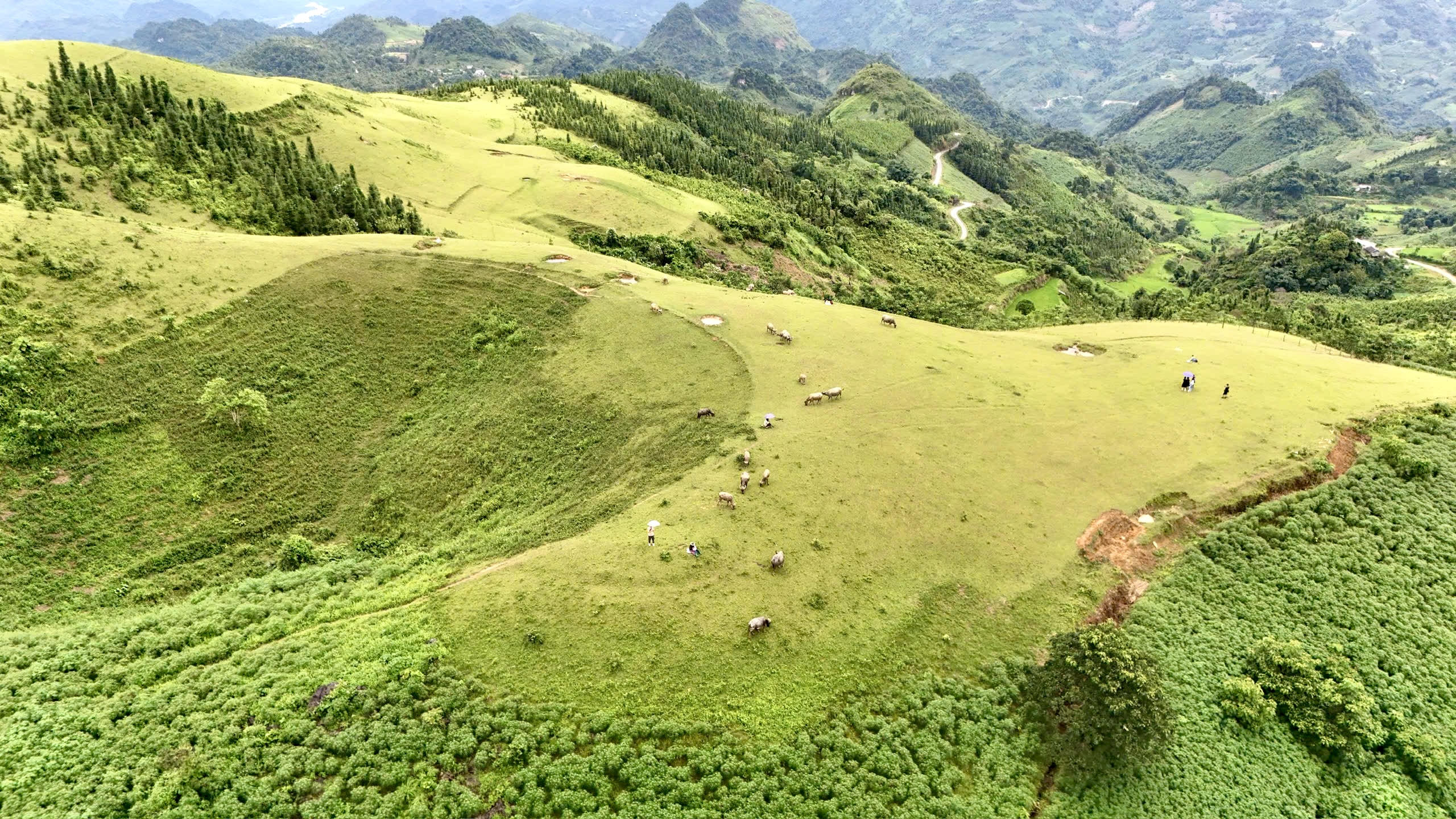 Những chú trâu được chăn thả trên cao nguyên, được ngâm mình dưới hố nước mát mẻ trong thời tiết nóng bức.