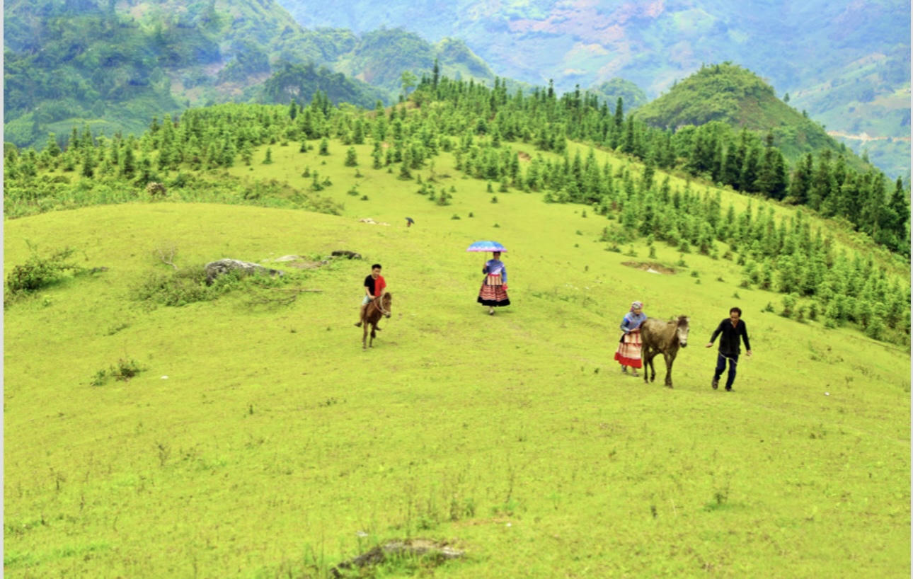 Đồi cỏ may thường được người dân chọn làm điểm dừng chân, nghỉ ngơi mỗi chiều trên đường đi làm nương về.