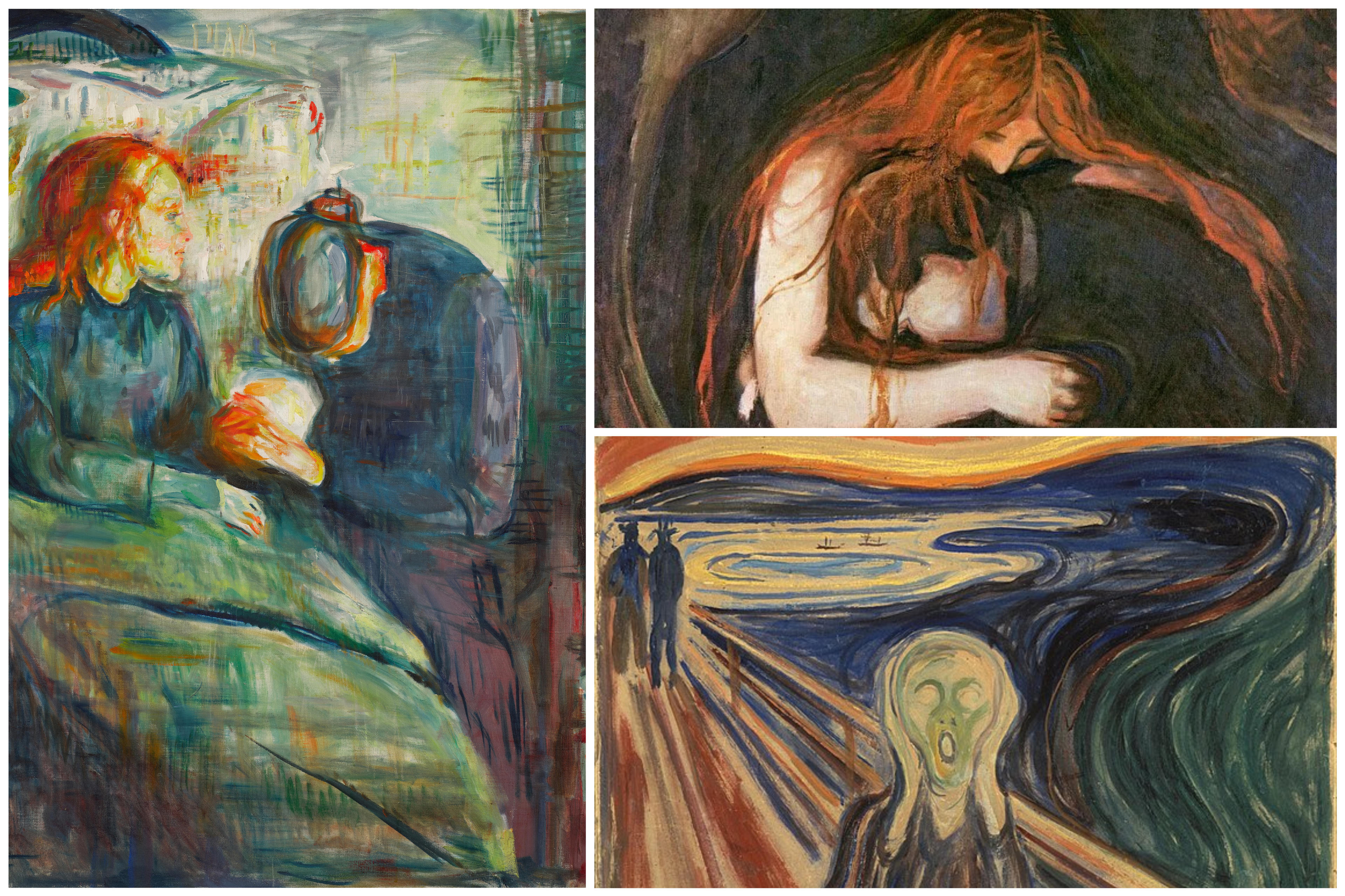 Qua các hình ảnh, gam màu ở trong tranh hoàn toàn có thể thấy được nội tâm của người vẽ. Giống những bức tranh của Edvard Munch, như The Scream (Tiếng thét), Vampire (Ma cà rồng), The Silk Child (Đứa trẻ ốm),… đều là ám ảnh về cái chết, nỗi sợ hãi đã theo ông từ bé, khi mẹ ông và em gái mất sớm, còn ông thì thường xuyên chịu áp lực từ người bố sĩ quan quân đội. Gam màu những bức tranh của ông thường u tối, các nhân vật trung tâm gắn với cái chết và hình ảnh máu me đáng sợ.