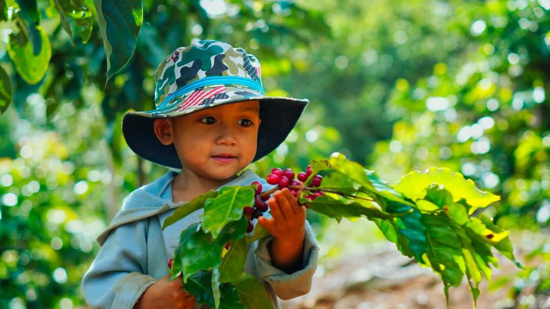 Em bé Gia Lai ở vườn cà phê trong nắng sớm Pleiku |