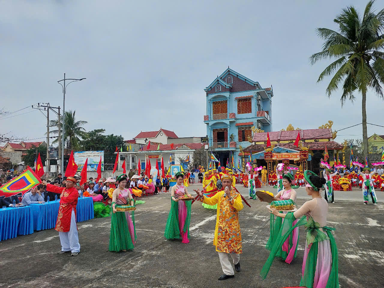 Biểu diễn “chèo cạn” tại lễ hội cầu ngư Cảnh Dương. |