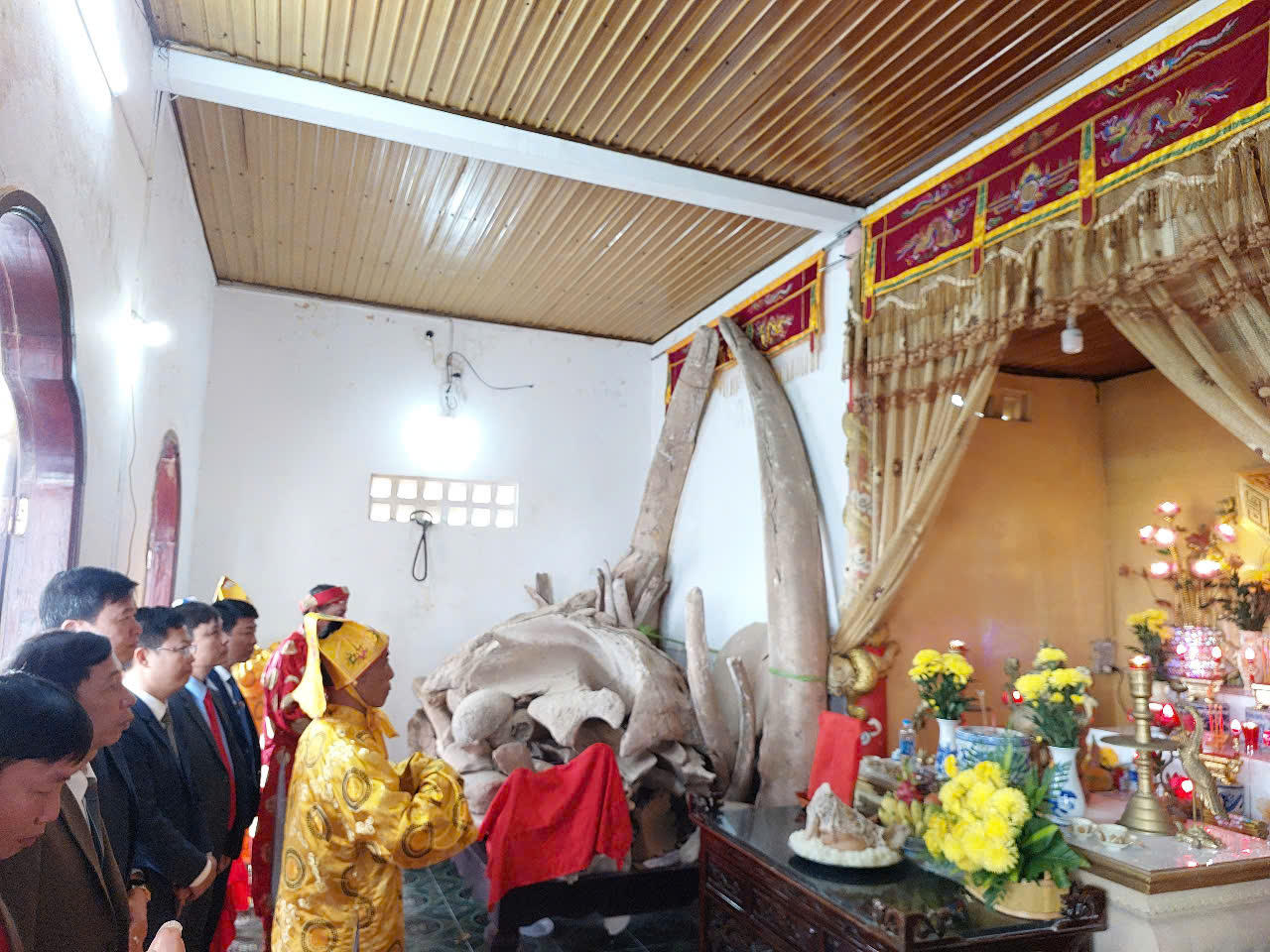 Đại diện lãnh đạo huyện Quảng Trạch dâng hương tại Ngư Linh Miếu. |