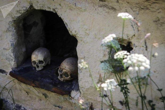 Nhìn từ bên ngoài vẫn có thể thấy các hộp sọ, xương người và các xác ướp được chôn cất từ 600 - 700 năm trước. Thậm chí, quần áo và một số đồ gia dụng của họ vẫn còn sót lại.