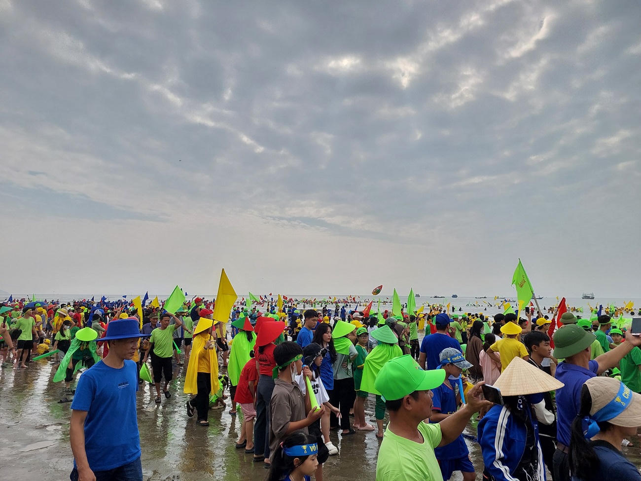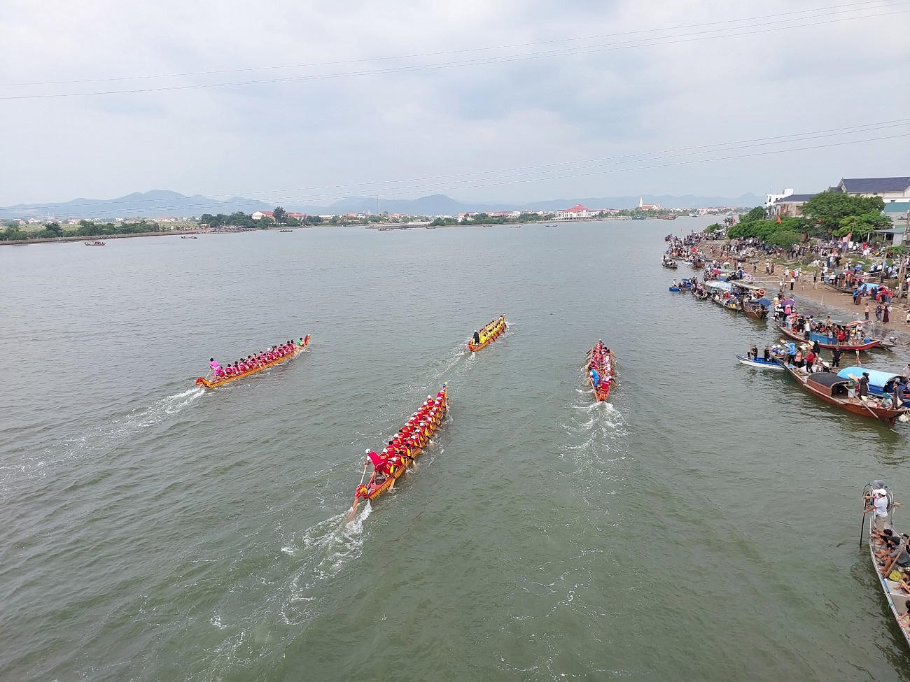 Du khách và người dân đến xem cổ vũ các đội đua. |