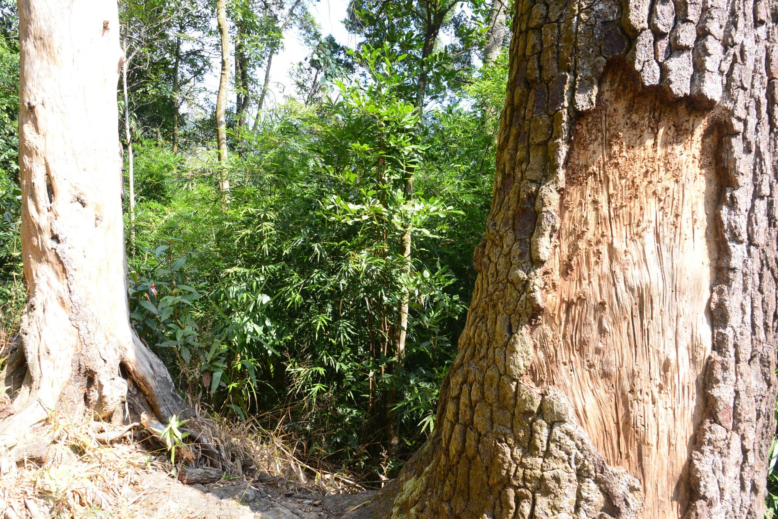 Hai cây Xích Tùng và Thông cổ thụ bị sét đánh năm 2021. Ảnh: Quang Hà |