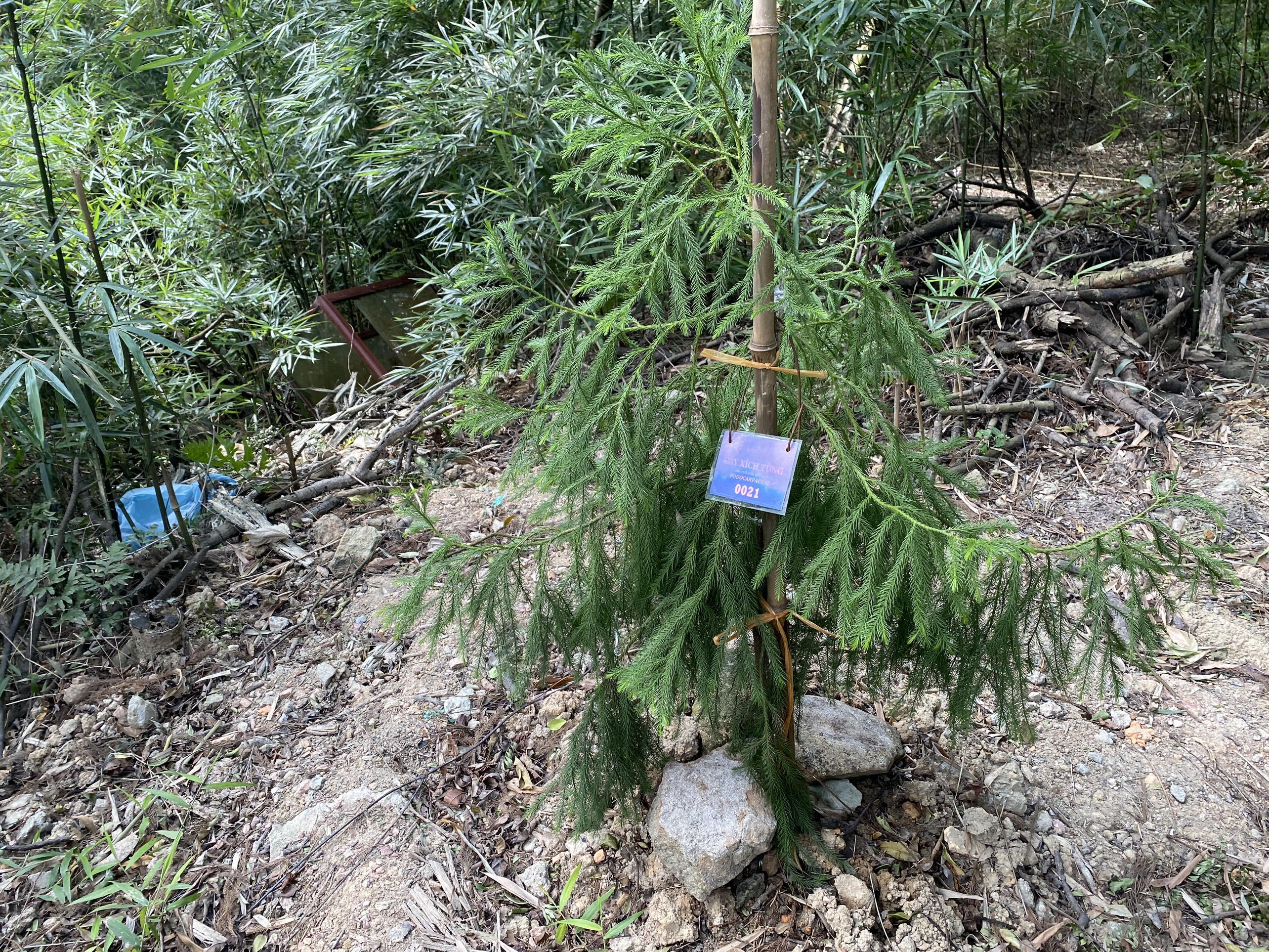 Những cây Xích Tùng được Ban quản lý di tích và rừng Quốc gia Yên Tử trồng mới. Ảnh: Quang Hà |