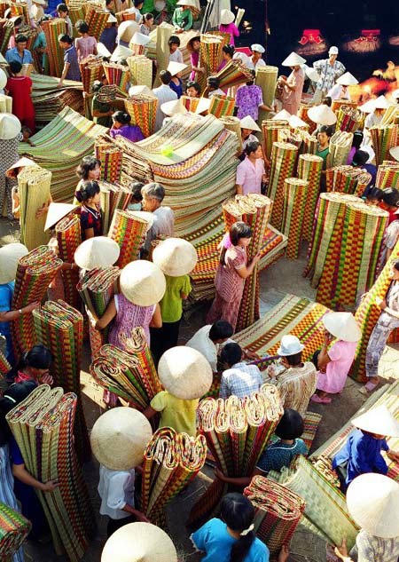 Qua bàn tay khéo léo của mình, hàng năm các hộ dân nơi đây đã sản xuất ra hàng triệu sản phẩm chiếu có hoa văn rực rỡ, mịn màng và bền chắc được thị trường trong và ngoài nước ưa chuộng. |