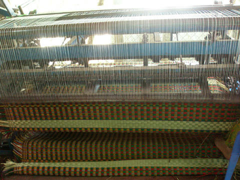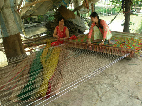 Tiếng máy dệt và đôi tay thoăn thoắt của những người thợ dệt chiếu lành nghề tạo nên ấn tượng cho nơi đây. |
