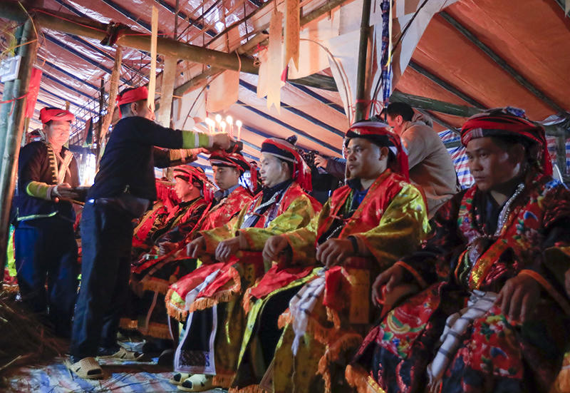 Trong Lễ cấp sắc tuân thủ theo thứ tự huyết thống, người đàn ông có vợ được chọn để cấp sắc trước ở nhà trưởng họ, người phụ nữ Dao đỏ có chồng làm lễ cấp sắc phải trùm kín đầu trong chiếc khăn đỏ suốt thời gian diễn ra buổi lễ.