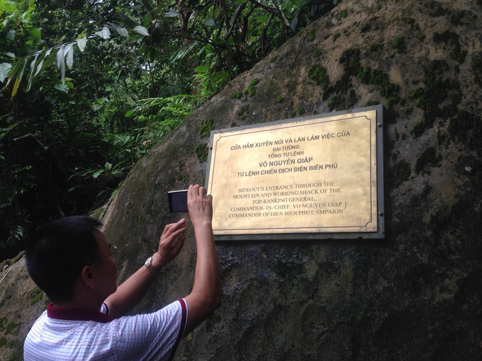 | Du khách đặc biệt tự hào và quan tâm tới di tích Cửa hầm xuyên núi và lán làm việc của Đại tướng, Tổng Tư lệnh Võ Nguyên Giáp |