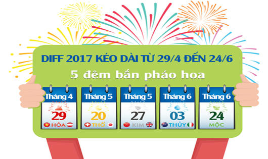 Chỉ còn khoảng hai tháng nữa, DIFF 2017, Lễ hội pháo hoa lớn nhất Đông Nam Á chính thức bắt đầu với 5 đêm trình diễn pháo hoa cùng nhiều lễ hội và sự kiện đồng hành hấp dẫn.