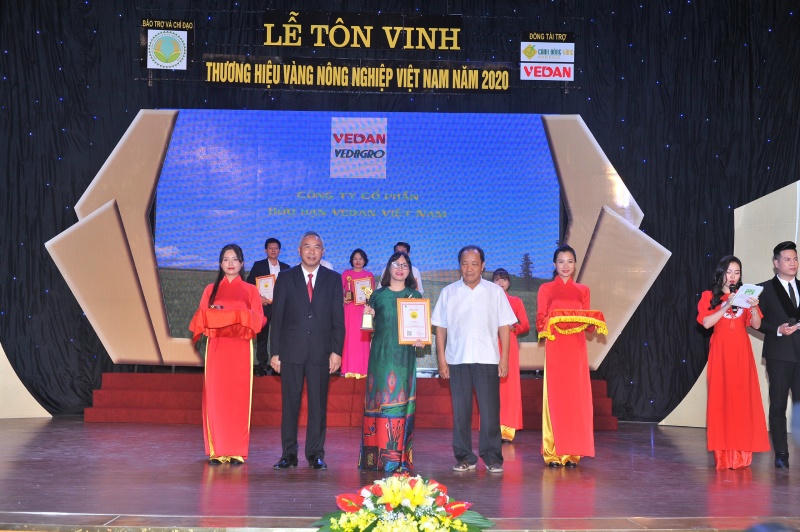 Năm 2020 đánh dấu cột mốc 5 năm liên tiếp Vedan Việt Nam giữ vững danh hiệu “Thương hiệu vàng Nông nghiệp Việt Nam” đối với 2 sản phẩm: Phân bón hữu cơ Vedagro dạng viên và Phụ gia thức ăn chăn nuôi Vedafeed dạng viên.