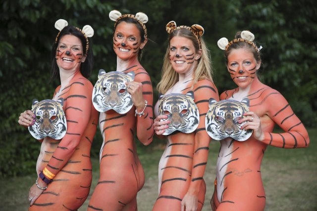 | Những người tình nguyện tham gia sẽ trút bỏ toàn bộ quần áo để tuyên truyền và gây quỹ nhằm bảo vệ loài hổ trên toàn thế giới. |