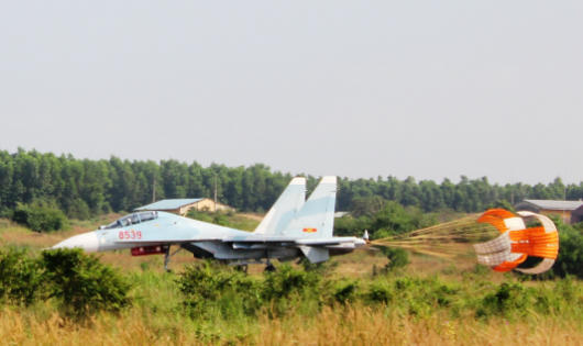 …6h15 phút, én bạc SU30-MK2 do Đại tá Trần Văn Dũng - Trung đoàn trưởng và Đại tá Trần Hải Âu - Phó Tham trưởng Trung đoàn điều khiển rời đường băng, lao vút lên bầu trời ban mai, làm nhiệm vụ bay trinh sát khí tượng.