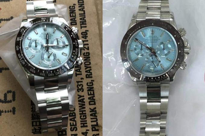 Đồng hồ Rolex thật (phải) và chiếc giả. Ảnh: Công an cung cấp.