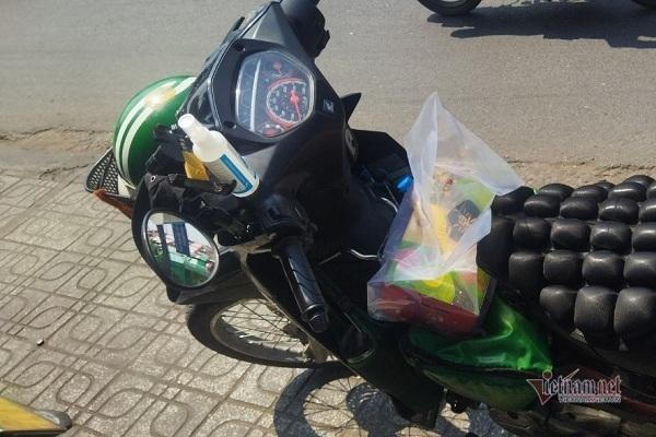 | Trên xe của anh Lê Ru B. lúc nào cũng có một chai nước xịt khuẩn. |