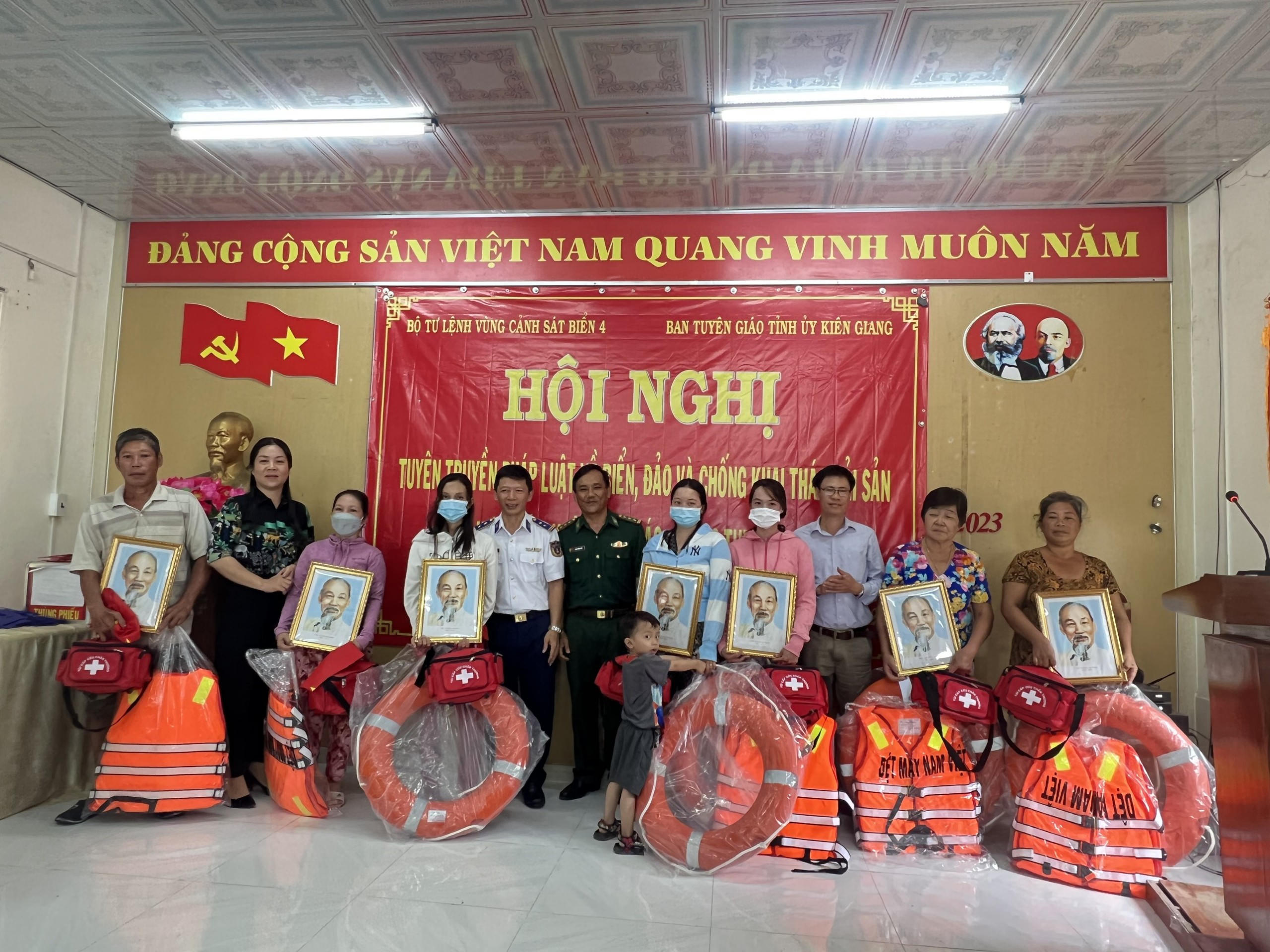 Tại các địa điểm tiến hành tuyên truyền, báo cáo viên của BTL Vùng Cảnh sát biển 4 đã thông tin đến bà con Nhân dân về một số tình hình và thực trạng đánh bắt thủy hải sản trên vùng biển Tây Nam; phổ biến Luật Thủy sản năm 2017, Luật Cảnh sát biển Việt Nam năm 2018 và các văn bản quy phạm pháp luật về chống khai thác thác hải sản bất hợp pháp, không báo cáo và không theo quy định (IUU)… BTL Vùng Cảnh sát biển 4 kết hợp trao tặng 40 suất quà cho các gia đình chính sách, ngư dân có hoàn cảnh khó khăn; tặng 50 túi thuốc y tế, 800 lá cờ Tổ quốc, 200 ảnh Bác Hồ, 1.200 sổ tay tuyên truyền pháp luật cho các tàu cá, ngư dân trên địa bàn.