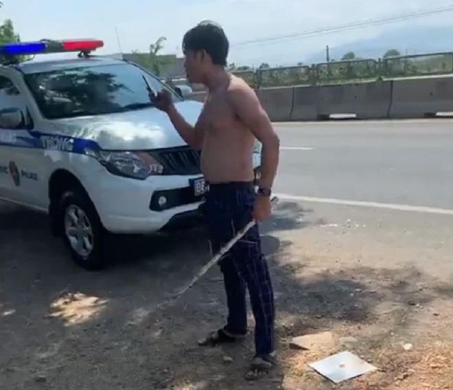 Chiều 30/3, trên mạng xã hội xuất hiện clip ghi lại cảnh một thanh niên cầm hung khí, la hét, tấn công xe tuần tra của CSGT công an tỉnh Bình Thuận.