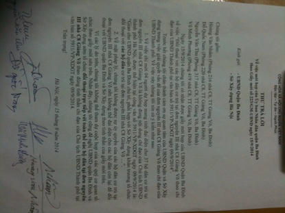 Tuy nhiên 4 hộ dân không đến tham dự họp theo lời mời. Thay vào đó, ngay trong ngày 15/9, 4 hộ dân có thư trả lời gửi UBND quận Ba Đình và Sở Xây dựng để giải trình lí do không đến tham gia cuộc họp. Trong thư trả lời, 4 hộ dân cho rằng: "Chỉ mời 4 người đến họp mang tính đại diện cho 37 hộ dân là không đúng với nội dung chỉ đạo của Chủ tịch UBND thành phố Hà Nội”. Vì công văn 5911/VP-XDGT có ghi “đối thoại với các hộ dân”.