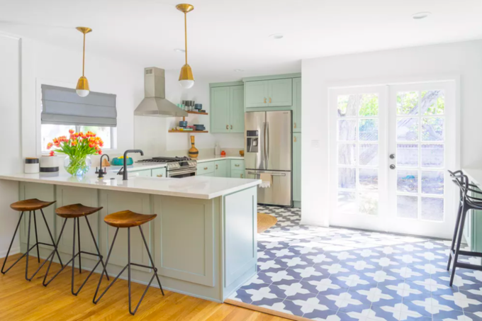 Màu xanh bạc hà ở khu bếp đem tới cảm giác thư giãn. Ảnh: The Spruce