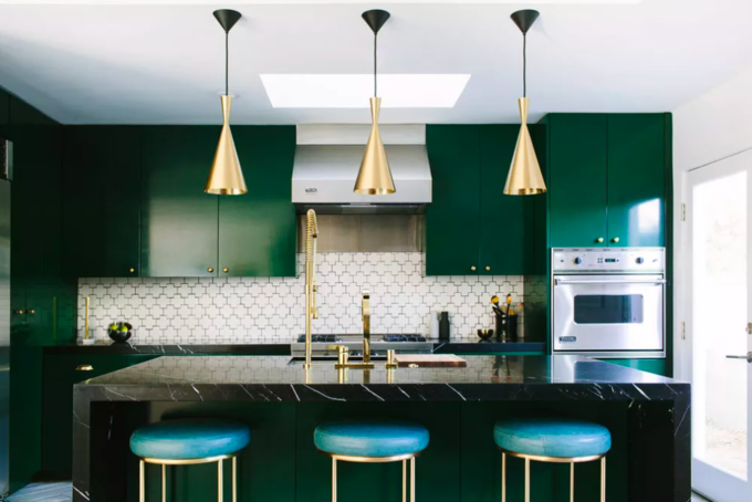 Nếu thích tạo cảm giác sang trọng cho tổ ấm, Youssefi lưu ý gia chủ thử màu xanh lá đậm, nhất là cho tủ bếp. Nếu đi với tay nắm bằng đồng và bàn bếp bằng đá cẩm thạch trắng, tủ bếp màu xanh lá đậm sẽ càng tôn không gian. Lưu ý, tránh xa màu xanh vỏ chanh vì nó vừa chóng lỗi thời vừa dễ khiến bạn nhức mắt.