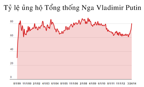 Lượng người ủng hộ Putin tăng vọt sau khi Crimea sáp nhập vào Nga hồi tháng 3. "Người Nga luôn tự hào về chiến thắng trong cuộc Chiến tranh Thế giới II, nhưng điều đó xảy ra cũng được 70 năm rồi", Lipman nói, "Đối với Crimea, ông Putin đã cho thấy chúng ta là những người chiến thắng đầy vinh quang và đang hồi sinh ở thực tại".
