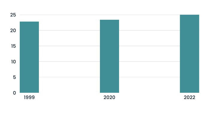Biểu đồ độ tuổi kết hôn trung bình của phụ nữ Việt Nam. |