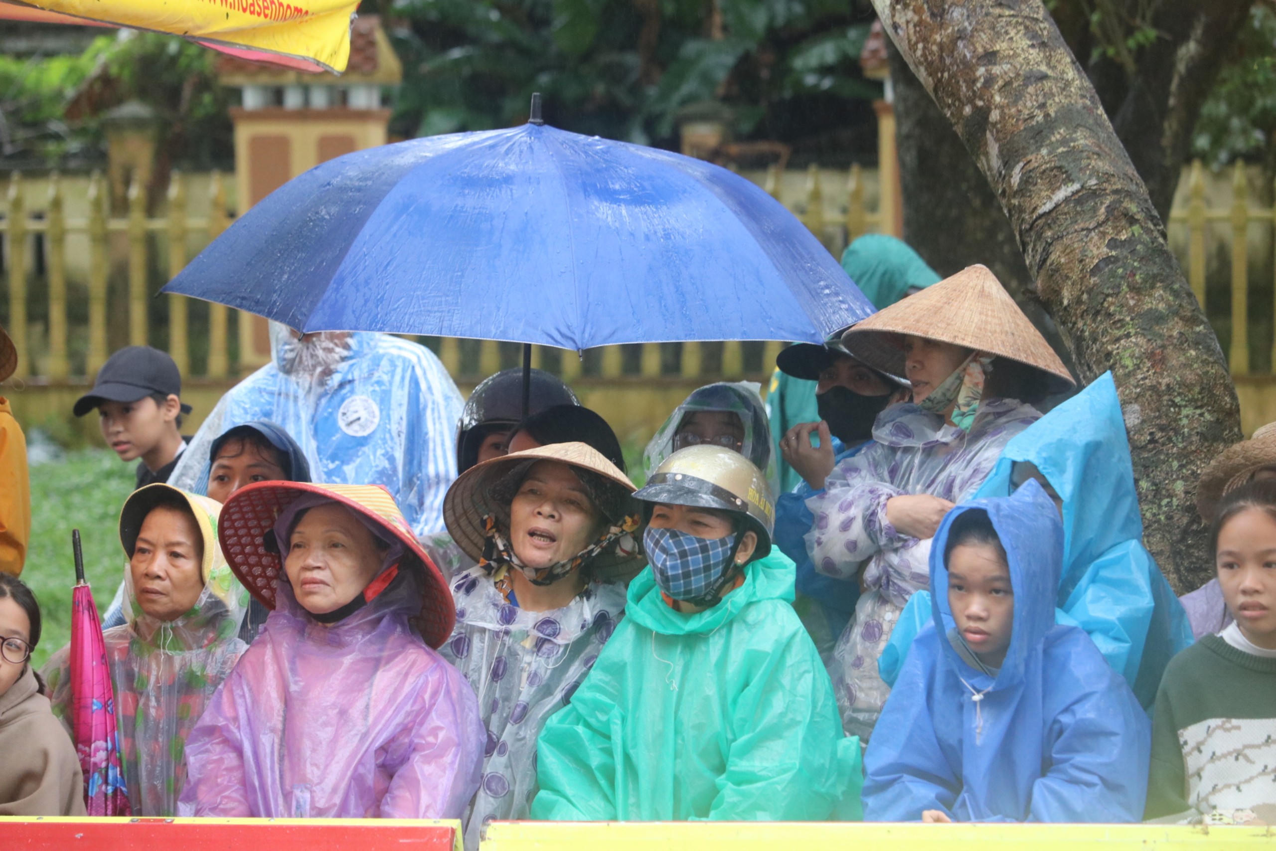 Ở bên dưới, đông đảo bà con Quảng Nam đội mưa xem ghi hình. |
