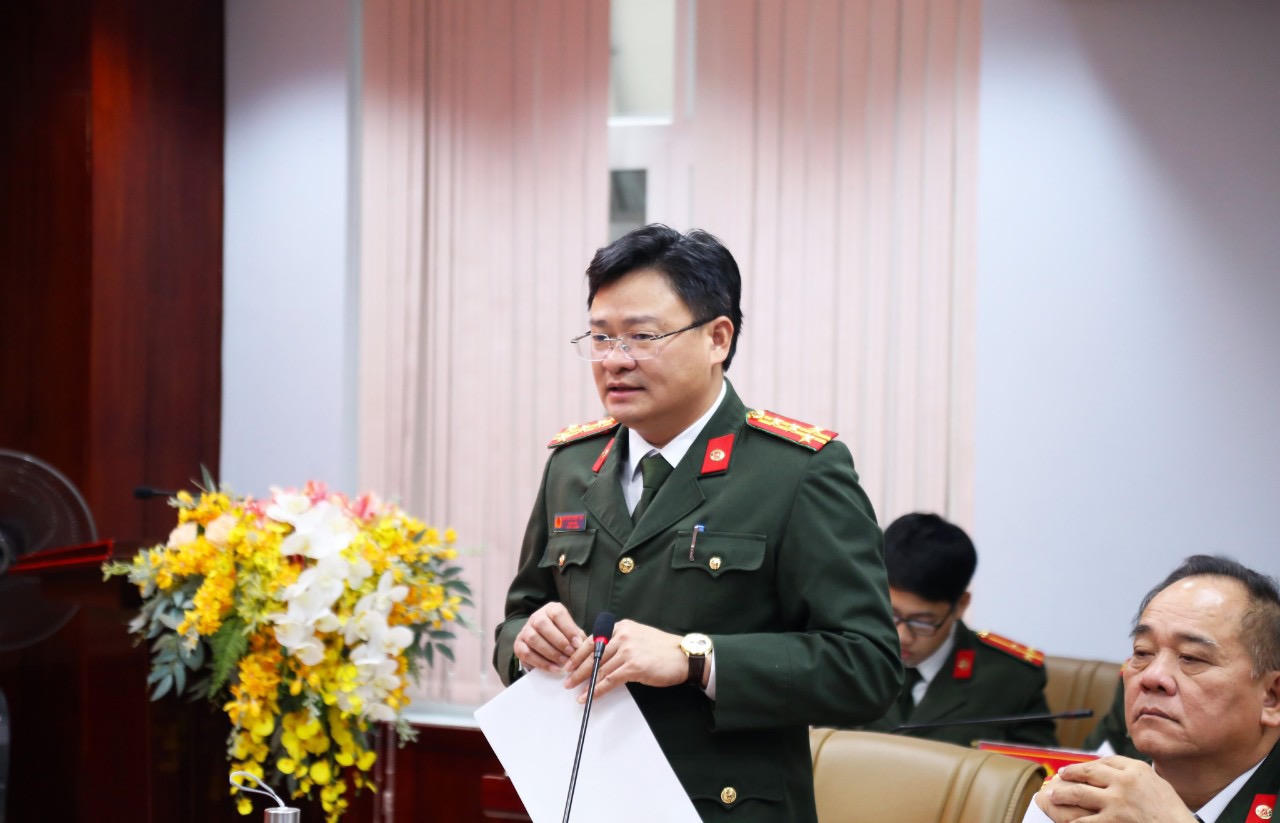 Đại tá Nguyễn Thanh Tuấn, Giám đốc Công an tỉnh Thừa Thiên Huế báo cáo kết quả công tác PCCC và CNCH; công tác đảm bảo TTATGT. |