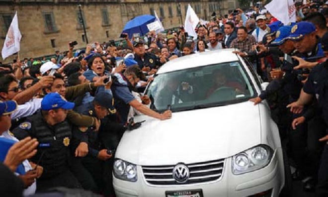 Nhiều người hâm mộ đã xoay xở để phá vỡ vòng ngoài an ninh tại Cung điện Quốc gia tuần trước khi Lopez Obrador đến dự một cuộc họp với Tổng thống Enrique Pena Nieto. Một người phụ nữ xông qua hàng rào cảnh sát và quân đội để lao thẳng vào vòng tay của Lopez Obrador. Ông đáp lại lòng nhiệt thành này bằng một nụ hôn lên má cô.
