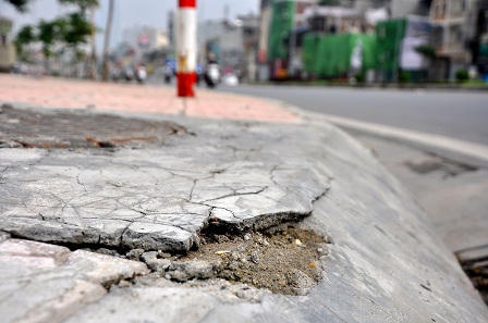 (PLO) - Vỉa hè đường vành đai 1, đoạn Ô Chợ Dừa - Hoàng Cầu mới đưa vào sử dụng đã bị hư hỏng nhiều do nhiều yếu tố, trong đó có việc thi công không đảm bảo chất lượng. Thực trạng này đang là sự chú ý, bức xúc trong dư luận về sự quản lý hè, những bất cập gây lãng phí.