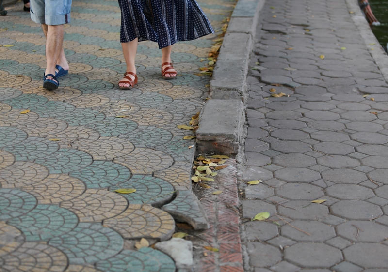 (PLO) - Vỉa hè tại Hồ Gươm hiện được cho là thiếu mỹ quan bởi có tận 20 loại gạch lát khác nhau. Bên cạnh đó ở nhiều vị trí còn bị đổ nát, gập ghềnh ảnh hưởng đến hình ảnh Việt Nam trong mắt người dân trong và ngoài nước.
