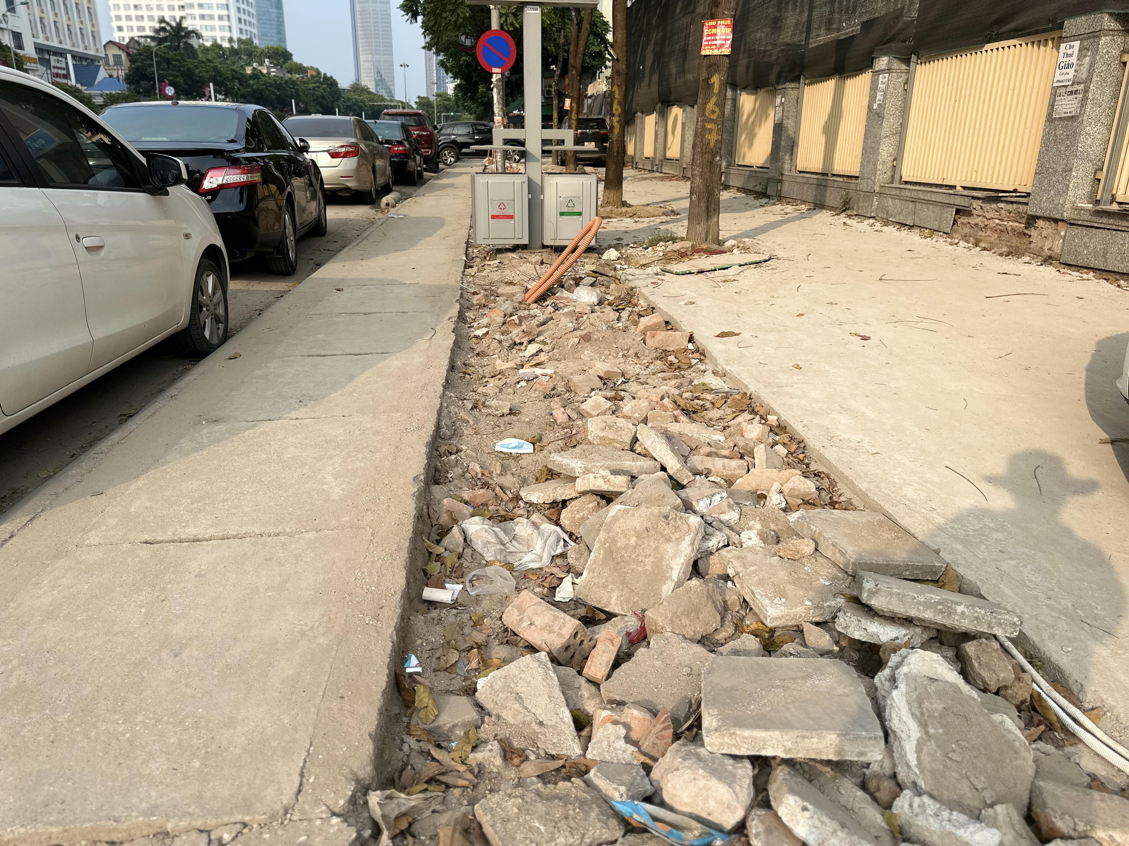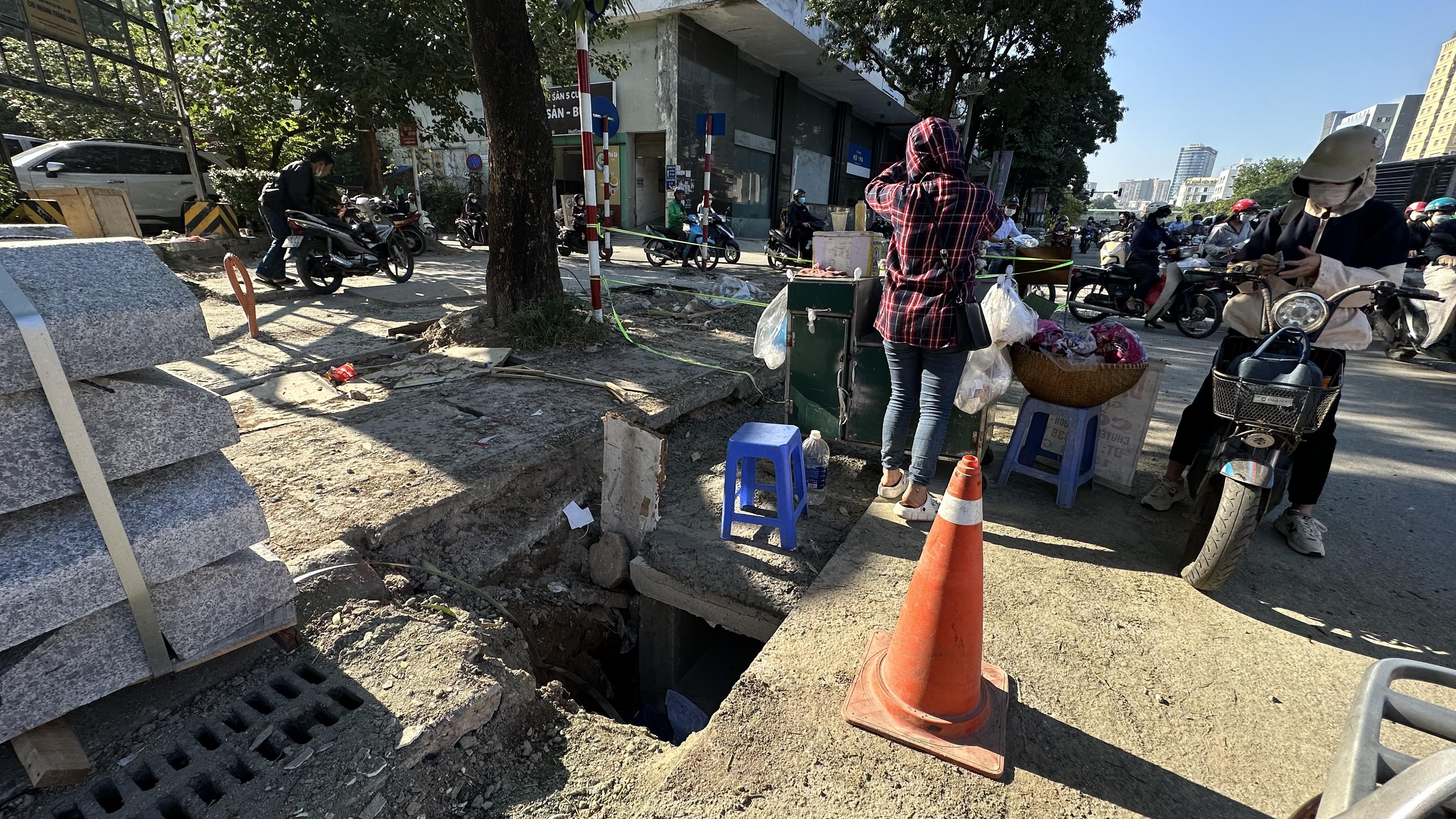 Chị Đ.M.C hàng ngày đi bộ trên con đường này cho biết, tình trạng đào xới vỉa hè bắt đầu cách đây 2 - 3 tuần, khiến việc lưu thông qua đây rất khó khăn. "Tôi đã bước rất cẩn trọng nhưng suýt mấy lần vấp ngã. Sợ trời tối, có người không chú ý hoặc trẻ con đi vấp ngã vào gạch, đá, bê tông hay sa vào hố thì hậu quả khôn lường", chị C nói.