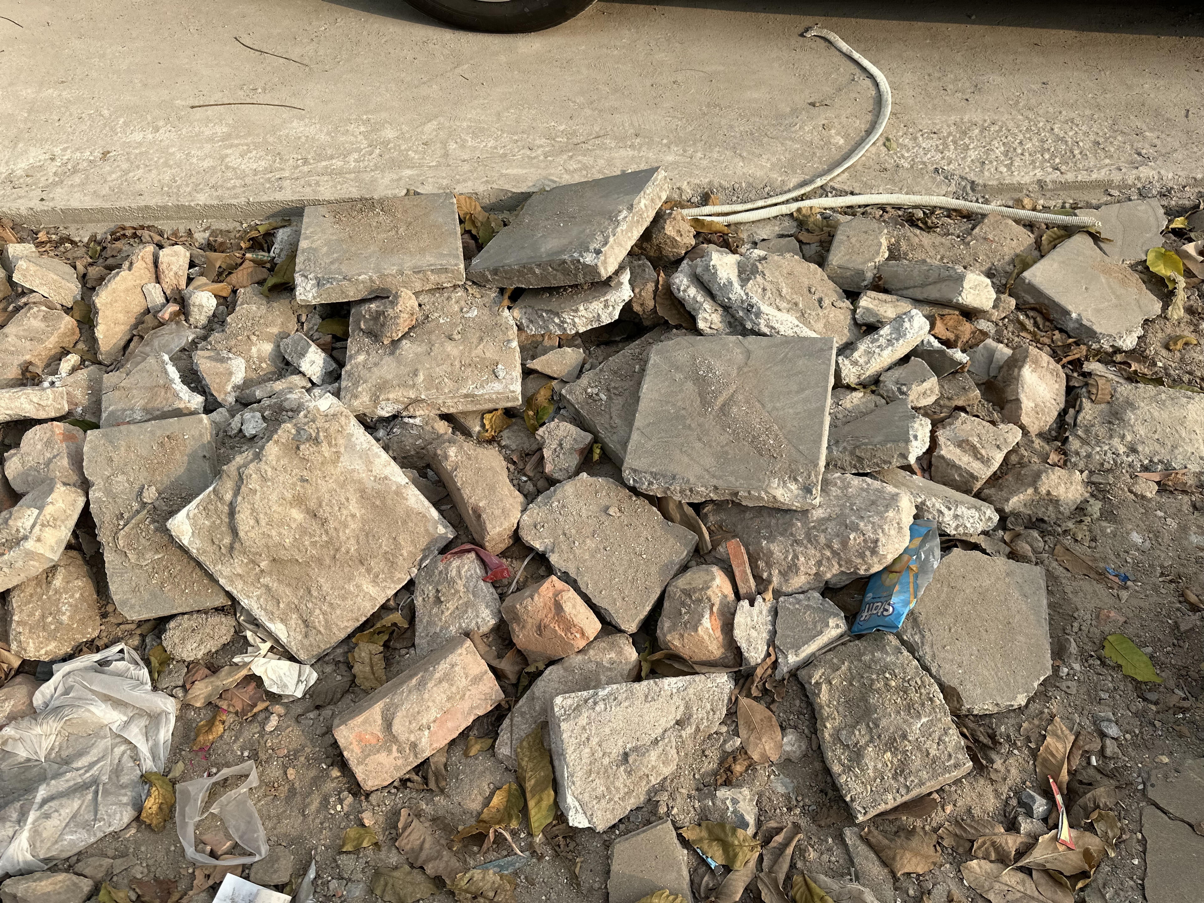 Những tấm bê tông đặt ngổn ngang như "cài bẫy" người đi đường |