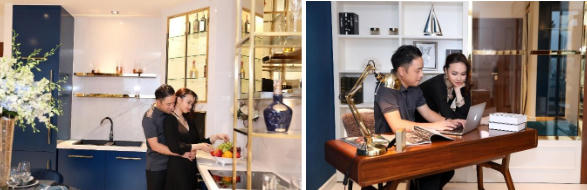 - Tôi là người theo đuổi phong cách tối giản, thoáng đãng, mang sắc trầm. Trong khi đó, Diệp lại là người chuộng đa sắc màu, tươi mới. Tưởng chừng sự khác biệt trong phong cách sẽ là rào cản lớn khi lựa chọn ngôi nhà lý tưởng thì ngược lại, sự hòa hợp giữa 2 thái cực phong cách đã mang đến sự tinh tế trọn vẹn cho ngôi nhà.