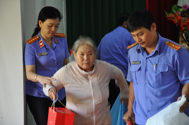Bà Trần Thị Quang cho biết “Dì mừng lắm vui lắm, cám ơn chính quyền địa phương và Viện kiểm sát đã quan tâm đến những người già như dì, được cho vậy dì vui lắm”