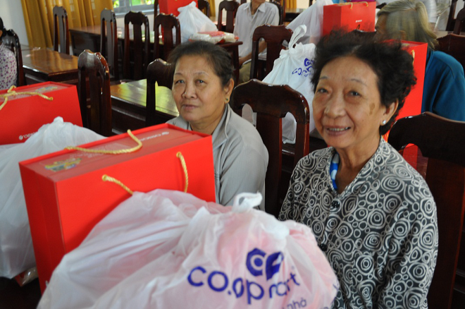 Ông Trần Văn On xúc động chia sẻ “khi nhận được giấy mời đến buổi phát quà này tôi vui mừng lắm, cám ơn các cô chú cán bộ lắm cháu”.
