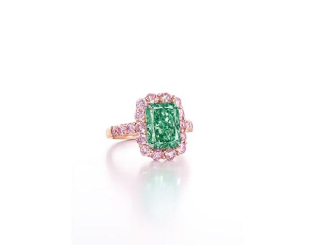 | "Aurora Green" là viên kim cương xanh Fancy Vivid lớn nhất từng được bán đấu giá, vào ngày 31/5/2016 tại phòng đấu giá Christie ở Hồng Kông, bán với giá 16.818.983 USD. (Nguồn: courtesy christies) |