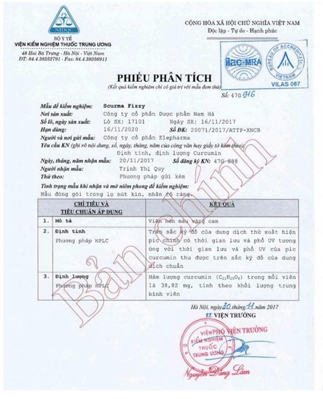 Hàm lượng curcumin trong viên sủi ScurmaFizzy đã được kiểm nghiệm tại Viện thuốc Trung ương với kết quả rất cao 20% (38,82 mg/viên). Trong khi curcumin trong nghệ bình thường chỉ chiếm 0,3%.
