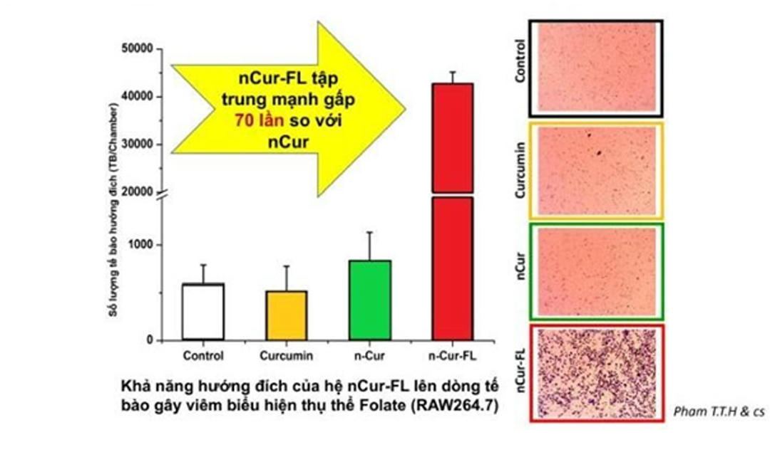 Công nghệ hướng đích là một phương pháp khoa học đưa các loại thuốc đến các tế bào bị bệnh một cách tập trung, chọn lọc mà không ảnh hưởng đến tế bào lành. Phương pháp này đã và đang áp dụng trong các liệu pháp điều trị ung thư và mang lại hiệu quả. Nhóm nghiên cứu cho biết: “Việc gắn acid folic vào hoạt chất Curcumin giúp Curcumin hướng đích tập trung tìm đến các ổ viêm loét ở dạ dày, không đi “lang thang” trong cơ thể, tránh gây lãng phí dược chất. Điều này giúp tăng hàm lượng dược chất tại các ổ viêm loét, tăng hiệu quả tác dụng, giúp các vết loét phục hồi nhanh hơn.”