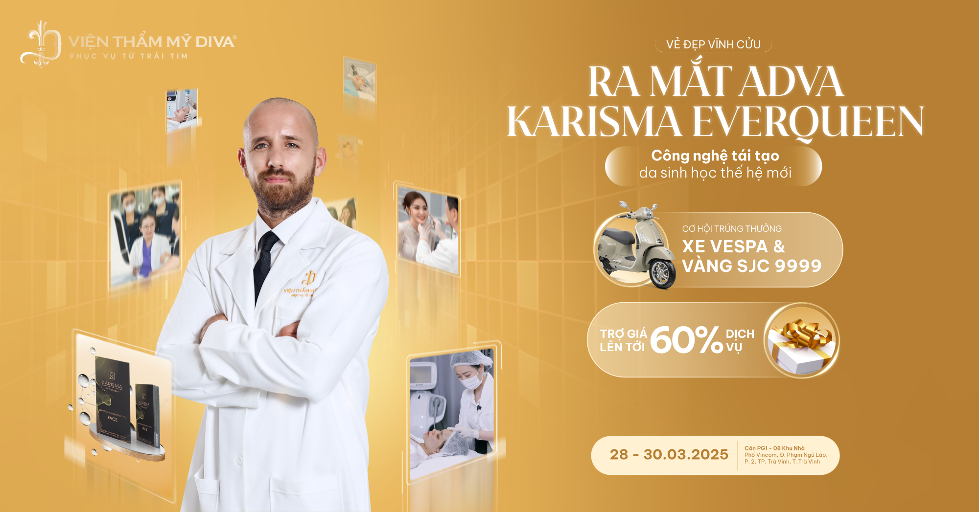 Được tổ chức tại chi nhánh Trà Vinh (Căn PG1 - 08 Khu Nhà Phố Vincom, Đường Phạm Ngũ Lão, Phường 2, TP. Trà Vinh, tỉnh Trà Vinh), Đại hội “Vẻ đẹp vĩnh cửu” của Viện thẩm mỹ DIVA bao gồm các chuỗi sự kiện làm đẹp lớn nhất từ trước tới nay, quy tụ đội ngũ chuyên gia đầu ngành, các Tiktoker nổi tiếng như GiGi, Thi Thi,... cùng đông đảo khách hàng trong khu vực.