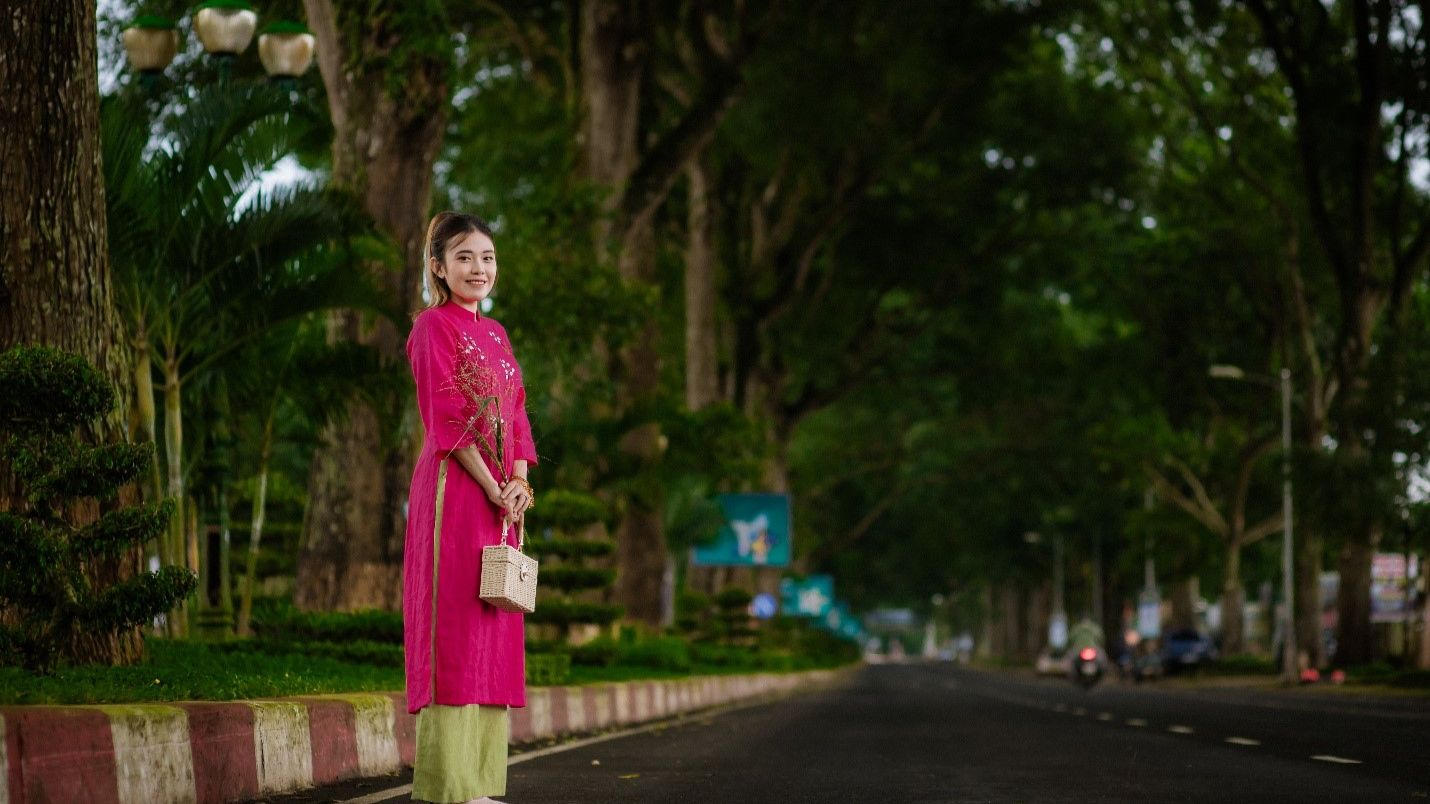 Dưới đây là hình ảnh chị Huynh Nym và bạn chụp hình, check in những khoảng khắc đẹp nhất tại tuyến đường phố Phan Đình Giót và đường Đam San thành phố Buôn Ma Thuột.